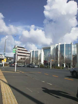 どこまでが車道で、どこから歩道で、そしてバス停がどんなカッコをしているのかも よくわからないでやみくもに歩きまわってしまった道。(実は前方左の緑の標識がバス停) 大きな雲が、踊りながらどんどん私を追い抜いていく。 2000/8/31 Parnel NewZeaLand NEXT INDEXに戻る