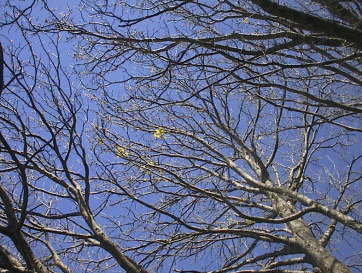 まだまだハダカの落葉樹に、早くも黄色いつぼみが。 フライング気味のつぼみを、春の冷たい風がなでていく。 これから1週間で、この大木たちはまっ黄色な花を抱えきれないほど咲かせるそうだ それまで、梢のてっぺんで春の太陽をヒトリ占めする花たち。 2000/10/13 BlueMountain Australia