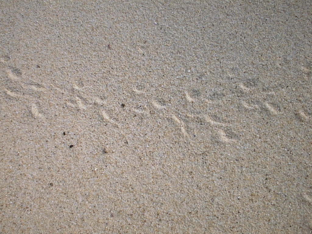 いつものコトながら、うろうろしすぎて道に迷った。 おかげで、誰もいないビーチに到着できた。 ものすごく風が強くて、波打ち際で遊ぶにはキビシイビーチだったけれども 私の足元には、小さな先客の残していった足跡が・・。 彼らのビーチを守りたいと思った。 2000/11/6 Central Australia