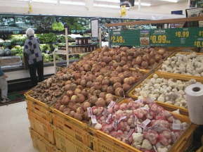 タマネギ1KG、99セント(当時NZドルは49円くらいだったので、、50円くらいですか。)