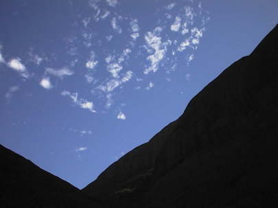 その岩たちの上、遠い青空で白い雲が踊っていた。